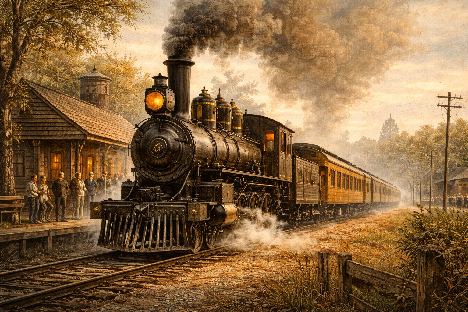 In 1887, the railroad reached town - and that changed everything. Before that, life moved at river-time. After that, folks and freight could head inland farther and faster. By the early 1900s, much of the downtown you see today - the shops, the businesses, that big courthouse - had been built back up after a big fire cleared out older buildings.